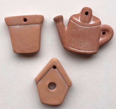 Set comes with Flower Pot, Water Pot, Bird House, Flower Pot - 1 1/2" W X 1 1/2" H Water Pot - 2 1/2" W X 2" H Bird House - 1 3/4" W X 1 1/2" H