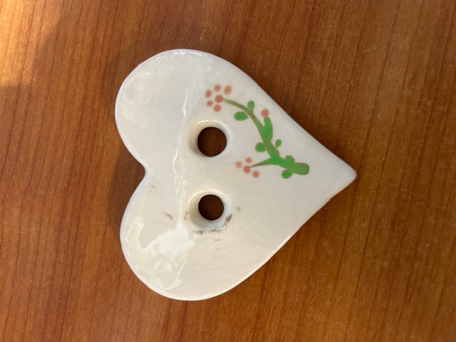 2 1/2" x 2 1/2" Ceramic heart in white with green and pink